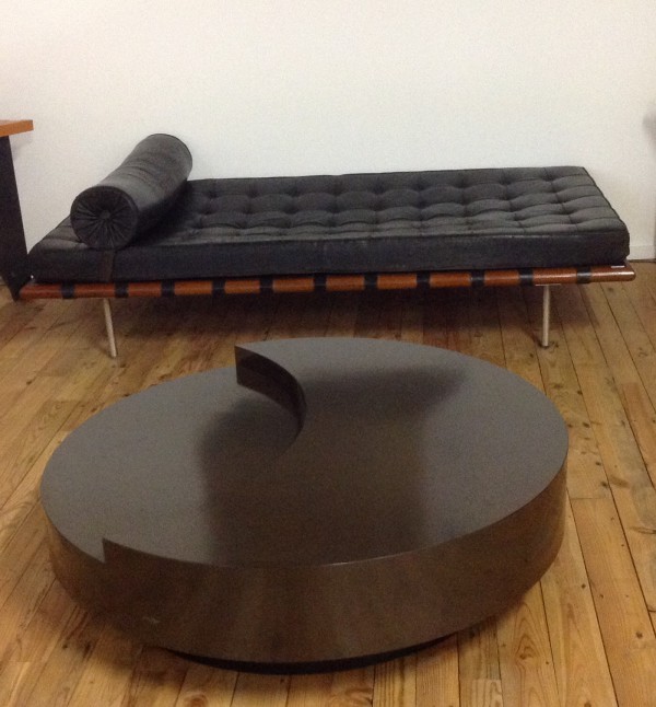 Table ronde pivotante signée Willy Rizzo.